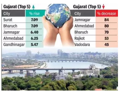 The presence of ozone (O3) over Gujarat has increased by about 7% and nitrogen dioxide (NO2) levels have been reduced by 80% over cities like Ahmedabad!