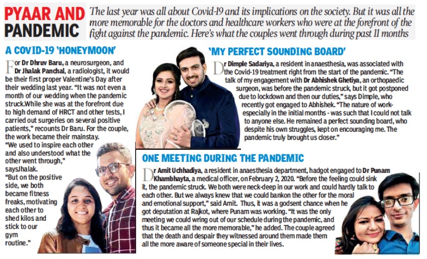 Thus, while healthcare workers in green, blue, and white battled the virus, love blossomed among some doctors who spent hours together at wards and isolation facilities and got a measure of their colleagues like never before.