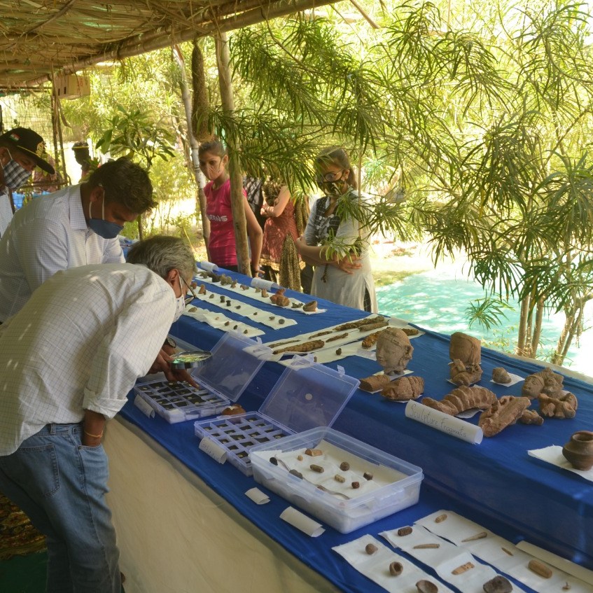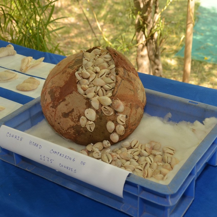 It was discussed during the secretary’s visit that till 500 years ago, the cowrie shells were used as a lower denomination currency. While scattered cowries are found from many archaeological sites, here the team has found an earthen pot full of 1,100 cowries – pointing at the ancient method of burying the currency for safekeeping.