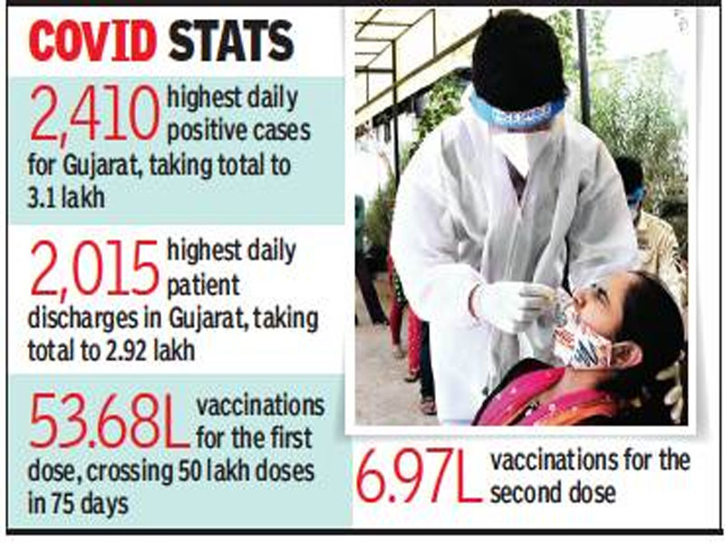 AHMEDABAD: As the state climbed yet another high at 2,410 new Covid-19 cases in 24 hours, the hospital beds are fast filling up – Ahmedabad-based private hospitals recorded 64% occupancy, whereas two major hospitals – Civil Hospital and Sola Civil Hospital – reached 50% of their capacity with surge in the cases.
