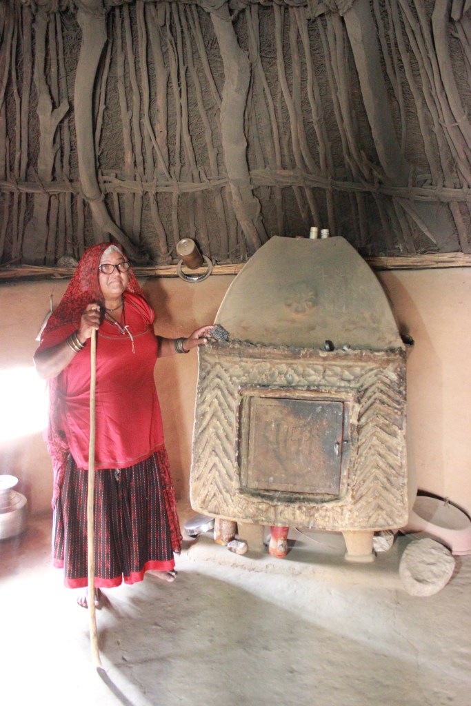 Kothlio is a larder specifically found in the rural desert parts of Barmer and Jaisalmer. It is made using mud and works as refrigerators to store perishable food items. The form and ornamentation of a kothlio is decided by the women of the family who made them. The women decorate the kothlio with mud-relief and mirror work, similar to the patterns used on the walls of the house. A newly married woman is expected to craft her own kitchen space along with the kothlio when she moves in with the husband’s family.