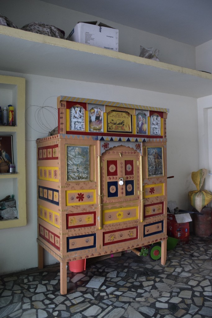Sandook is a type of storage furniture used to store clothes, mattresses, bedding and pillows. Valuable items like jewellery, gold and money are also stored in hidden compartments or between the mattresses. Itis often ornamented with carvings, mouldings, and paintings. A sandook formed an important part of marriage rituals in Punjab as it’s part of the bride-wealth. A sandook would be commissioned specifically for such occasions. The sense of memory associated with vernacular furniture is most evident in the case of sandook. In Punjab, some families choose to hold on to it along with all the belongings of the owner intact in their memories after the owner passes away.