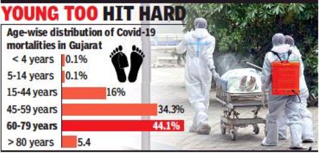 AHMEDABAD: Covid-19 was earlier considered to be a virus that targetted the elderly and people above 60 years were considered high risk. As the official toll of pandemic in the state hovers at 10,000, analysis of mortality data reveals the pattern changed significantly in the second wave.