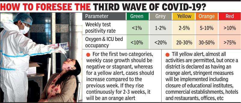 “It includes weekly test positivity rate, rate of increase in cases and occupancy for oxygen and ICU beds. Till yellow alert, almost all the activities are permissible, but once it goes into orange and red alert, the authorities would be empowered to impose restrictions.”