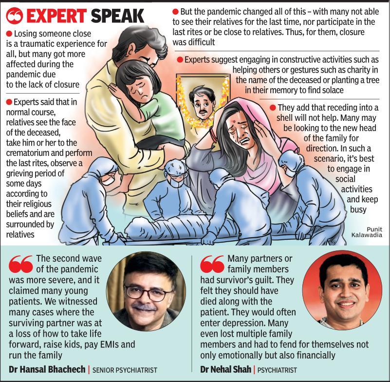 As the pandemic ravaged many families, mental health experts in the city said that it would take a long time for many to come to terms with the demise of their loved ones. Many families lost more than one member, putting the survivors in abject despair.