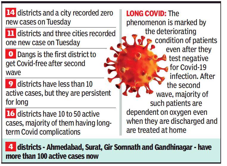 Dr Kartikeya Parmar, in-charge of the Covid Hospital at Civil Hospital, said that out of the 23 patients with the hospital, 95% are there for over 15-20 days. “Majority are middle-aged men with comorbidities whose lungs were severely impacted by the infection and need long-term respiratory support,” he said.