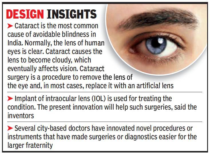 AHMEDABAD: A city-based couple along with their colleagues were granted a patent for their forceps for iris claw lenses by the Patent Office of the Government of India on July 2. The innovation will help eye surgeons during complicated cataract surgeries.