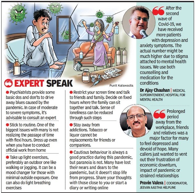“Almost all members of society have been affected by the pandemic at varying degrees. We often compare it with the impact of World Wars. While moderate to extreme cases need due examination by experts, citizens can take simple steps such as talking about anxiety, sticking to routine and light exercises,” said Dr Pradip Vaghasiya, a psychiatrist.