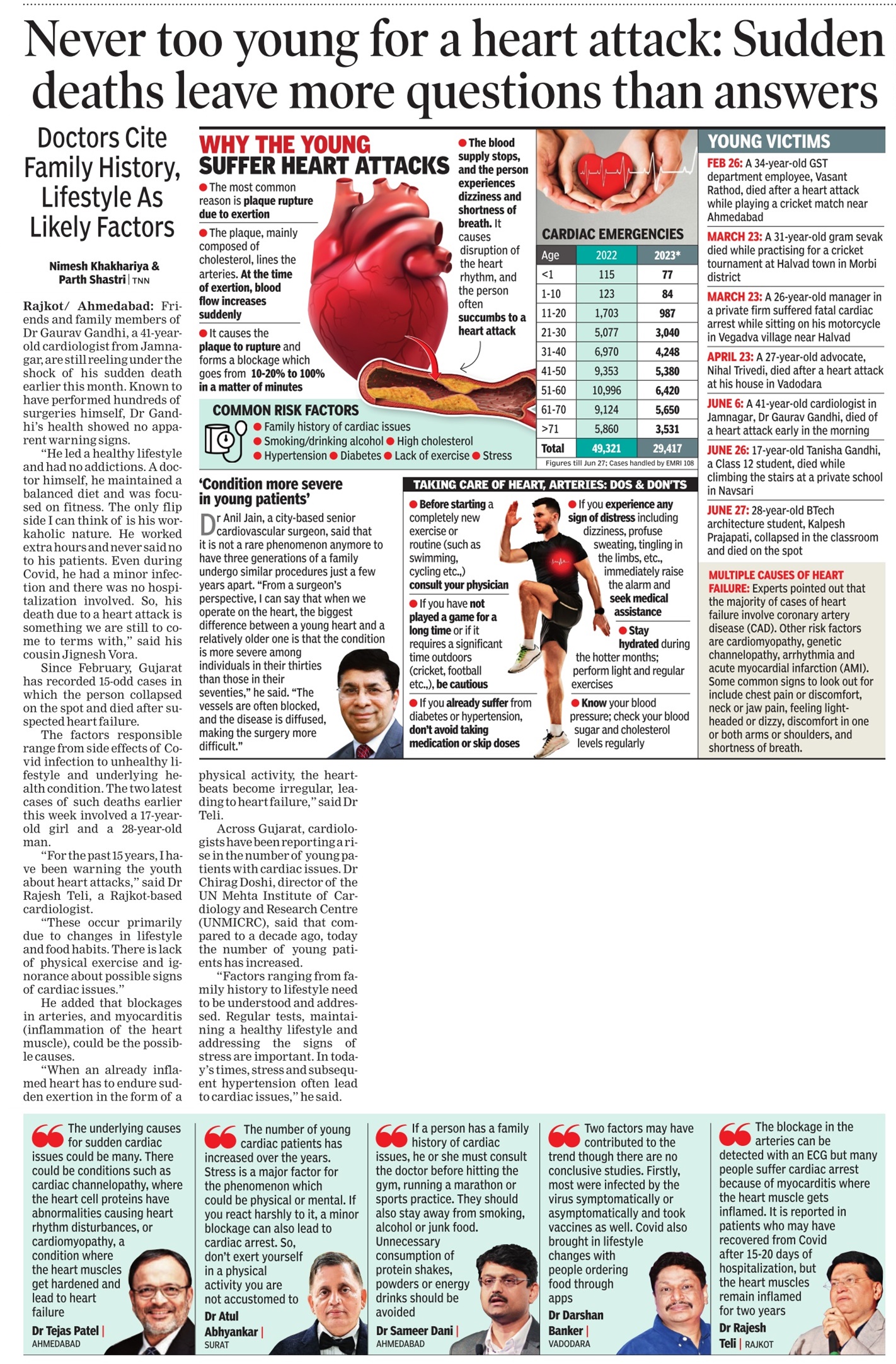 AHMEDABAD: Earlier this week, Gujarat was jolted by shocking deaths of two students – a 17-year-old girl in Navsari and a 28-year-old youth in Rajkot – who fatally collapsed at their respective school and college reportedly due to heart failure. These were not solitary instances.