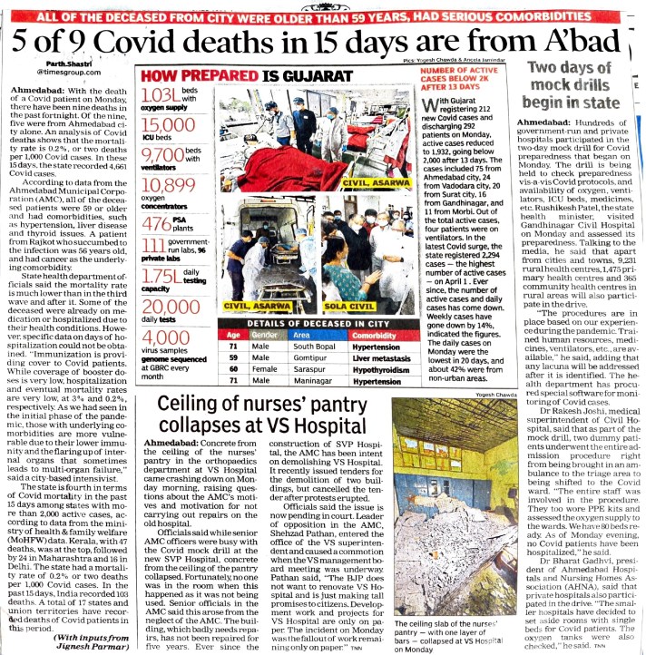AHMEDABAD: With the death of a Covid patient on Monday, there have been nine deaths in the past fortnight. Of the nine, five were from Ahmedabad city alone. An analysis of Covid deaths shows that the mortality rate is 0.2%, or two deaths per 1,000 Covid cases. In these 15 days, the state recorded 4,661 Covid cases.