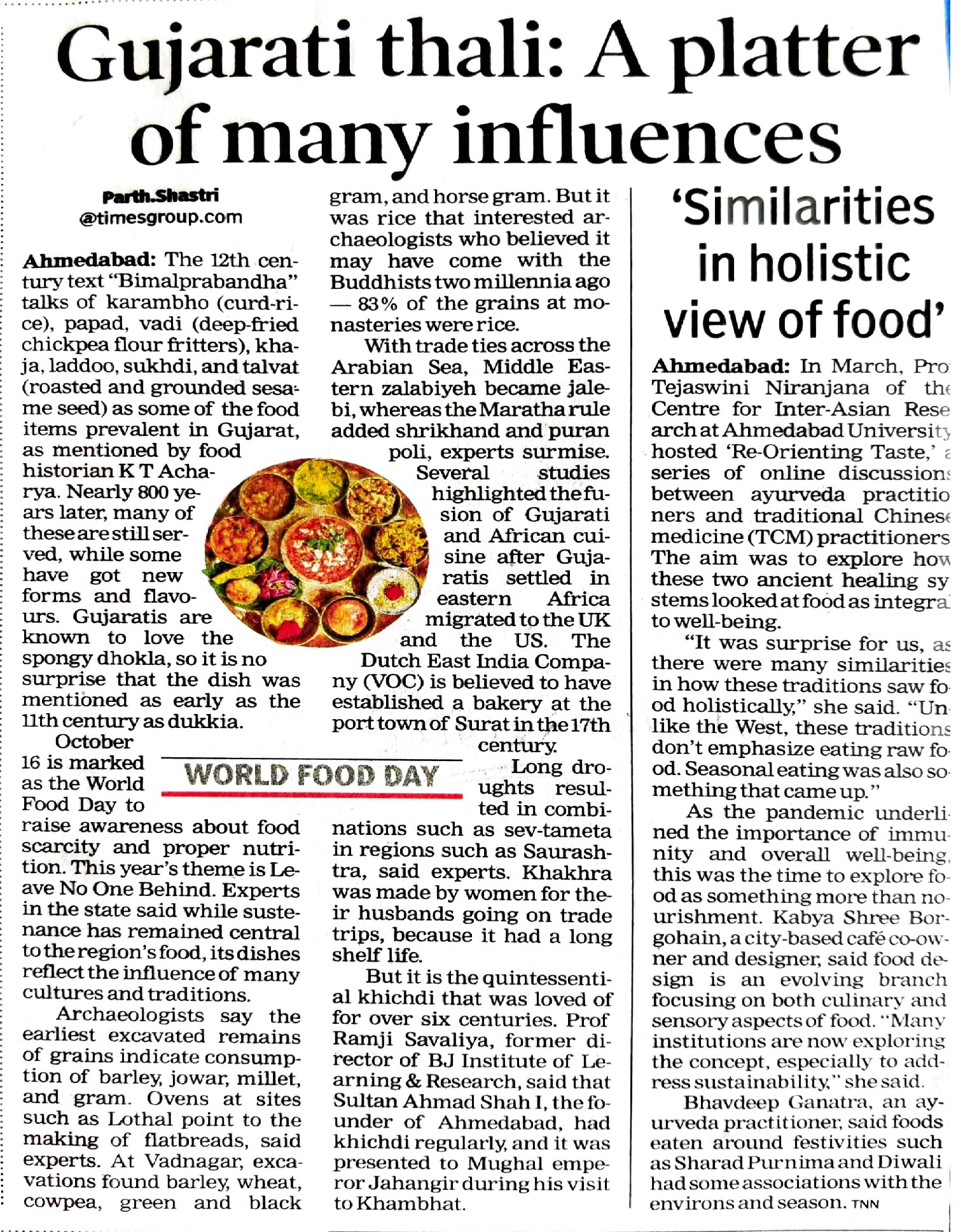 AHMEDABAD: The 12th century text “Bimalprabandha” talks of karambho (curd-rice), papad, vadi (deep-fried chickpea flour fritters), khaja, laddoo, sukhdi, and talvat (roasted and grounded sesame seed) as some of the food items prevalent in Gujarat, as mentioned by food historian K T Acharya. Nearly 800 years later, many of these are still served, while some have got new forms and flavours. Gujaratis are known to love the spongy dhokla, so it is no surprise that the dish was mentioned as early as the 11th century as dukkia.