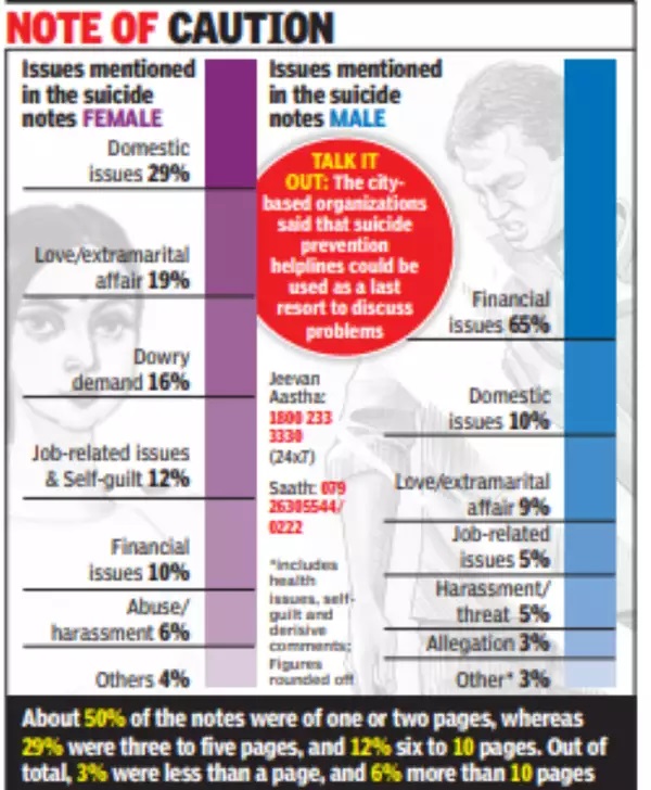 AHMEDABAD: In one of the suicide notes by a young woman, which was sent to the Directorate of Forensic Sciences (DFS) for a handwriting analysis, she pours her heart out in two pages, indicating that she was depressed as she could not meet her in-laws’ expectations.