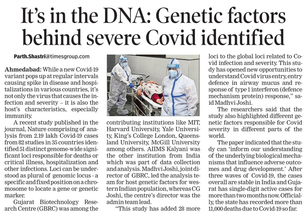 Gujarat Biotechnology Research Centre (GBRC) was among the contributing institutions like MIT, Harvard University, Yale University, King’s College London, Queensland University, McGill University among others. AIIMS Kalyani was the other institution from India which was part of data collection and analysis. Madhvi Joshi, joint director of GBRC, led the analysis team for host genetic factors for western Indian population, whereas CG Joshi, the centre’s director was the admin team lead.