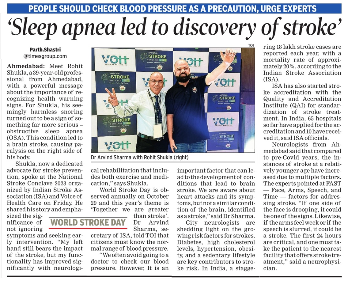 Ahmedabad: Meet Rohit Shukla, a 39-year-old professional from Ahmedabad, with a powerful message about the importance of recognizing health warning signs. For Shukla, his seemingly harmless snoring turned out to be a sign of something far more serious – obstructive sleep apnea (OSA). This condition led to a brain stroke, causing paralysis on the right side of his body.