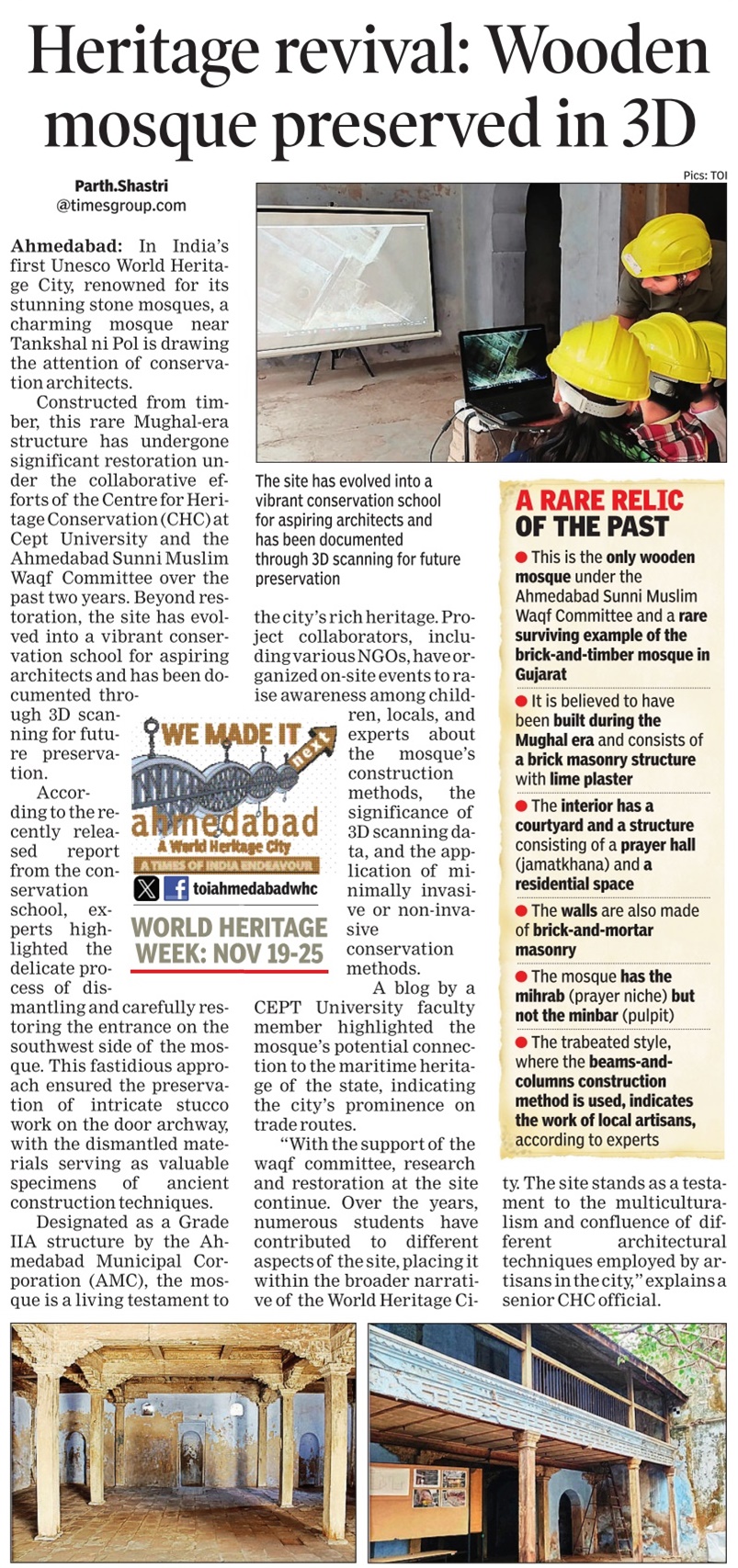 AHMEDABAD: In India’s first Unesco World Heritage City, renowned for its stunning stone mosques, a charming mosque near Tankshal ni Pol is drawing the attention of conservation architects.