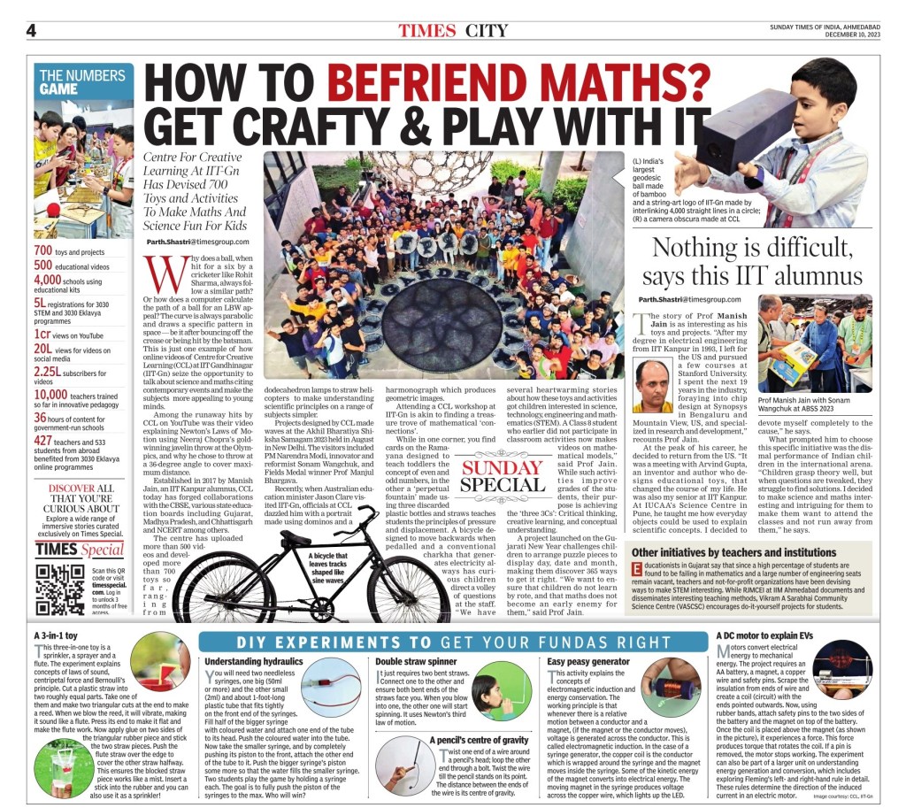 The centre has uploaded more than 500 videos and developed more than 700 toys so far, ranging from dodecahedron lamps to straw helicopters to make understanding scientific principles on a range of subjects simpler. Projects designed by CCL made waves at the Akhil Bharatiya Shiksha Samagam 2023 held in August in New Delhi. The visitors included PM Narendra Modi, innovator and reformist Sonam Wangchuk, and Fields Medal winner Prof Manjul Bhargava.