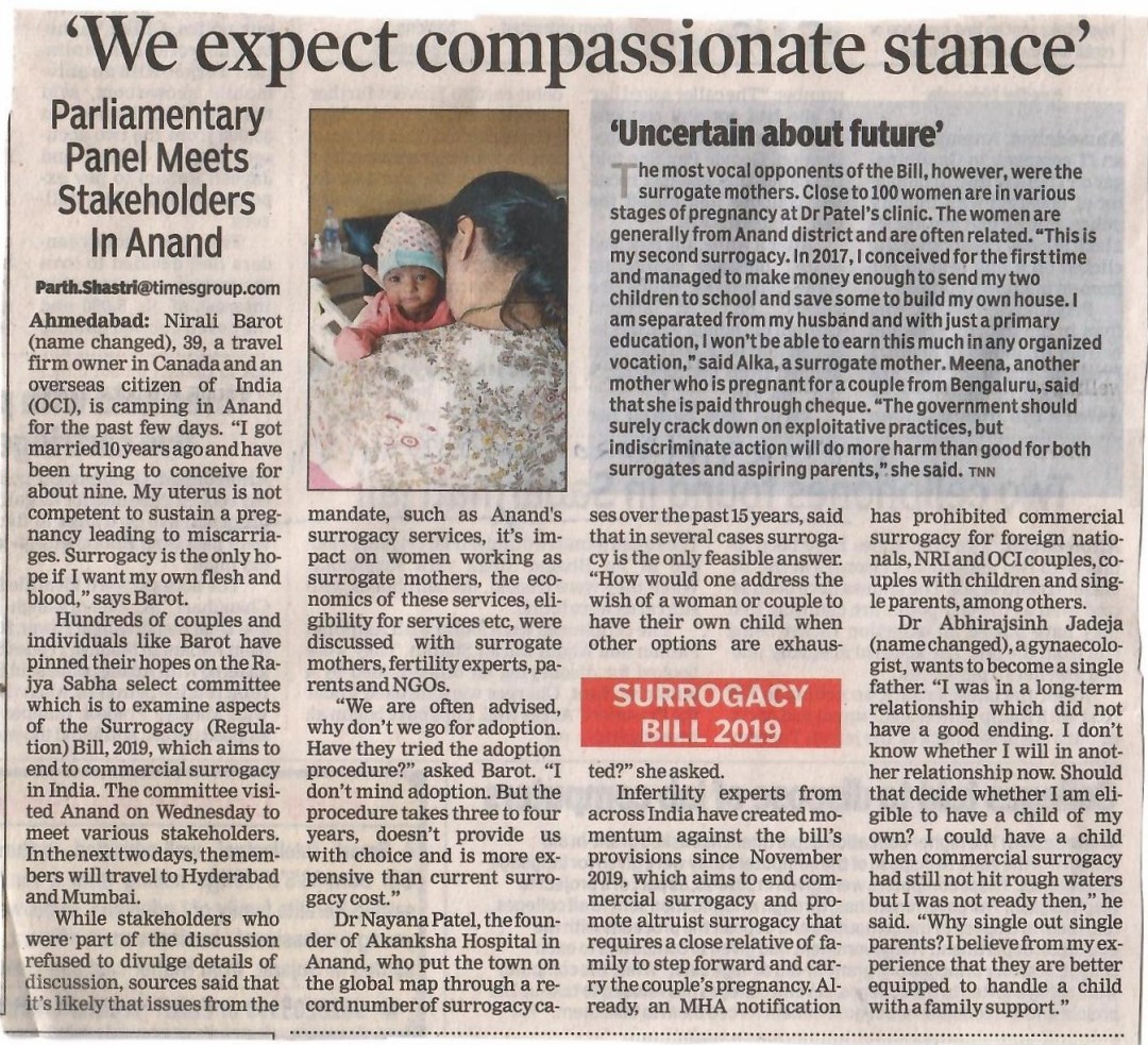 Published on January 23, 2020 AHMEDABAD: Nirali Barot (name changed), 39, a travel firm owner in Canada and an overseas citizen of India (OCI), is camping in Anand for the past few days. “I got married 10 years ago and have been trying to conceive for about nine. My uterus is not competent to sustain … Continue reading ‘We expect compassionate stance’